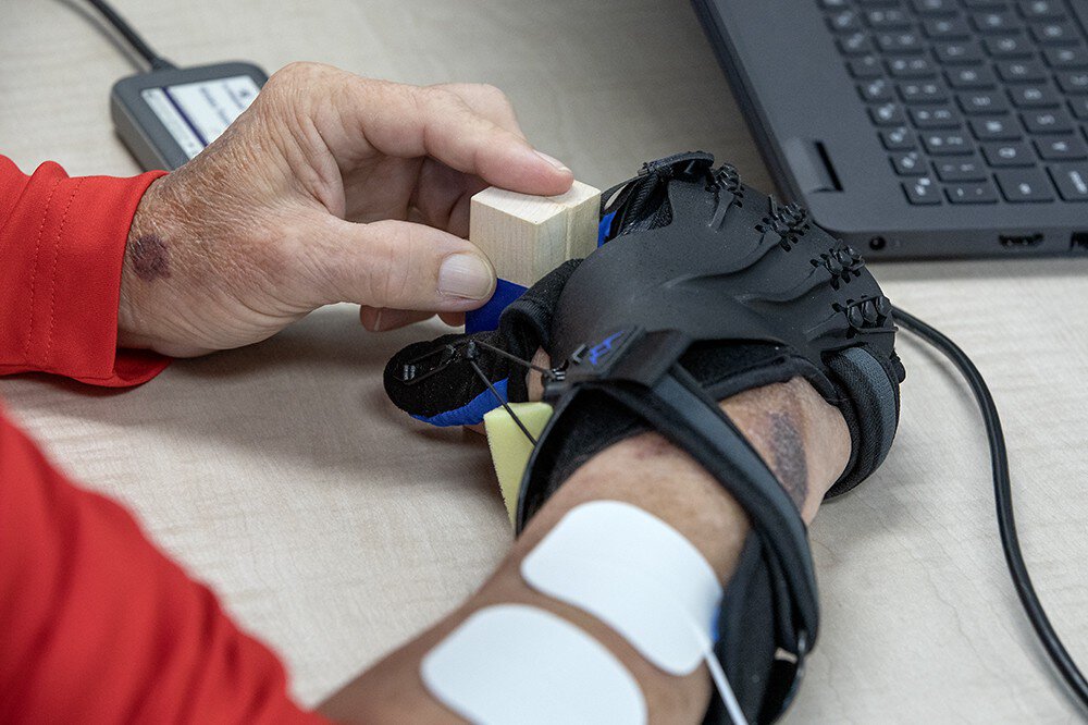 “The glove helps to keep his fingers extended so he can do more of the repetitive movements. We're trying to isolate his ability to grasp and release,” Herman said. “We are excited to see how beneficial Vivistim becomes as we use it as a supplemental tool to the evidence-based principles of neurorehabilitation performed as part of an occupational therapy plan.”