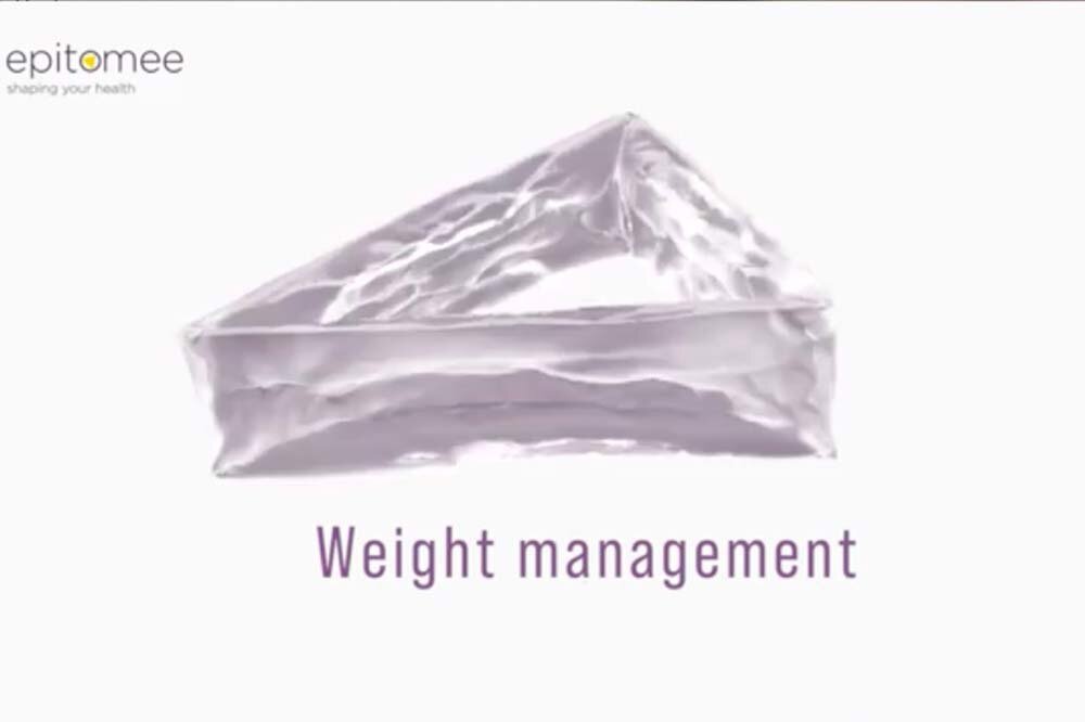 A screenshot from Epitomee's website shows the triangular device that expands in the stomach.